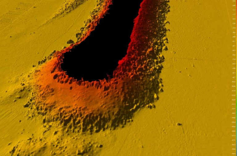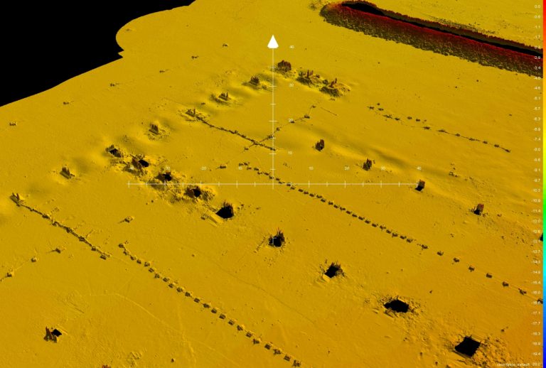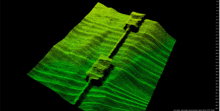 Snimak višesnopnim dubinomjerom: sidreni blokovi i temelji stupova gatova (DTM)
